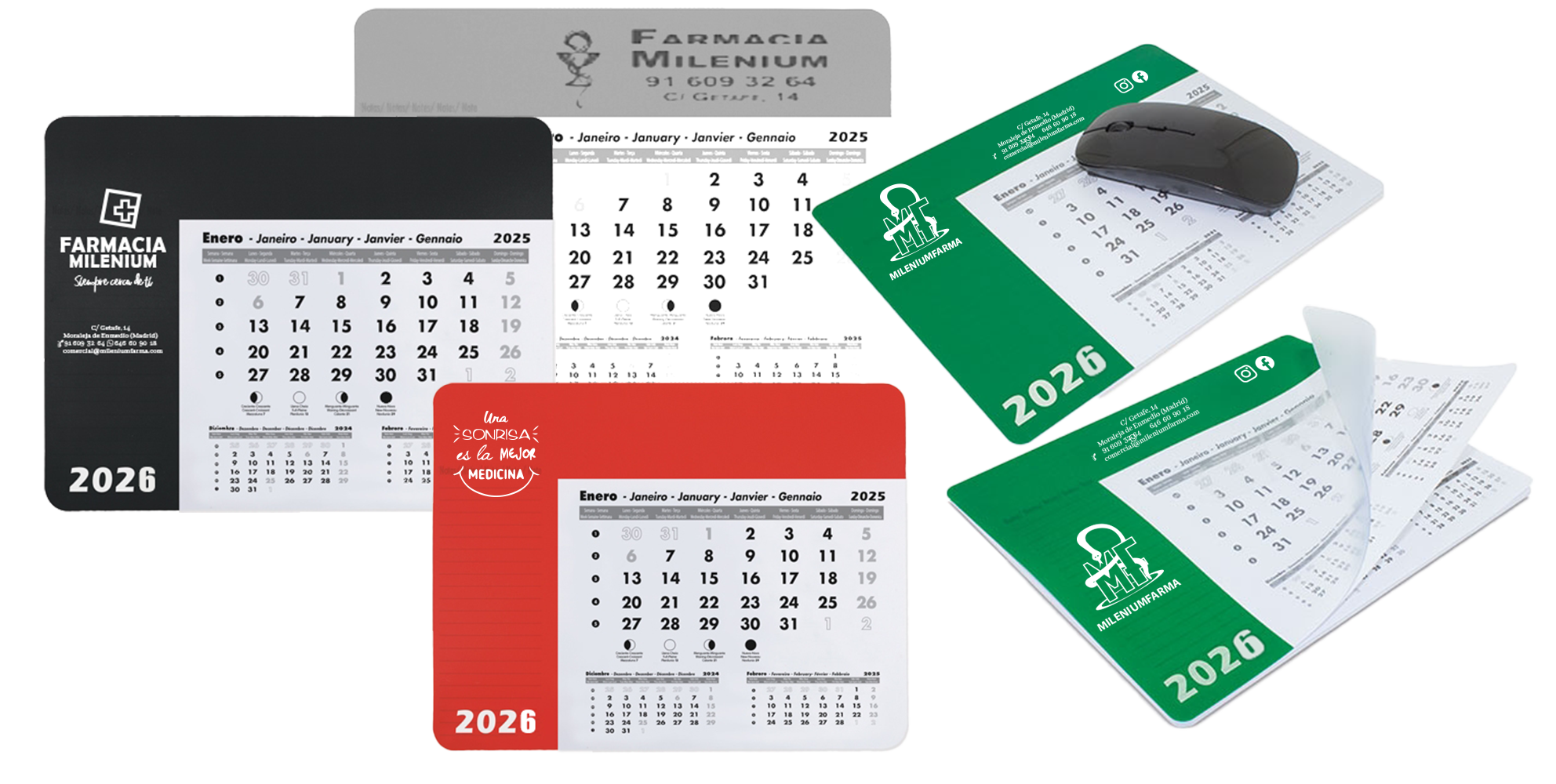 Los precios mostrados en las tablas de calendarios incluyen: Grabación a todo color + transporte a su farmacia sin coste adicional.
